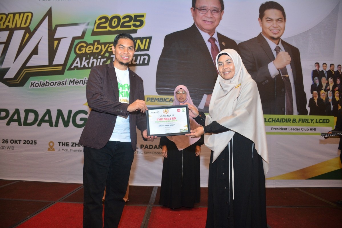 Grand Giat HNI 2025 di Padang menghadirkan Komisaris Utama HNI Bapak H. Muslim M. Yatim bersama Bapak Zulchaidir Berliana Firly LCED yang memotivasi mitra Sumatera Barat tentang pentingnya kepemimpinan dan kolaborasi dalam bisnis halal. Acara ini menjadi wadah berharga untuk menyatukan langkah para mitra, memperkuat jejaring regional, dan menumbuhkan optimisme menyongsong pertumbuhan HNI di Ranah Minang.