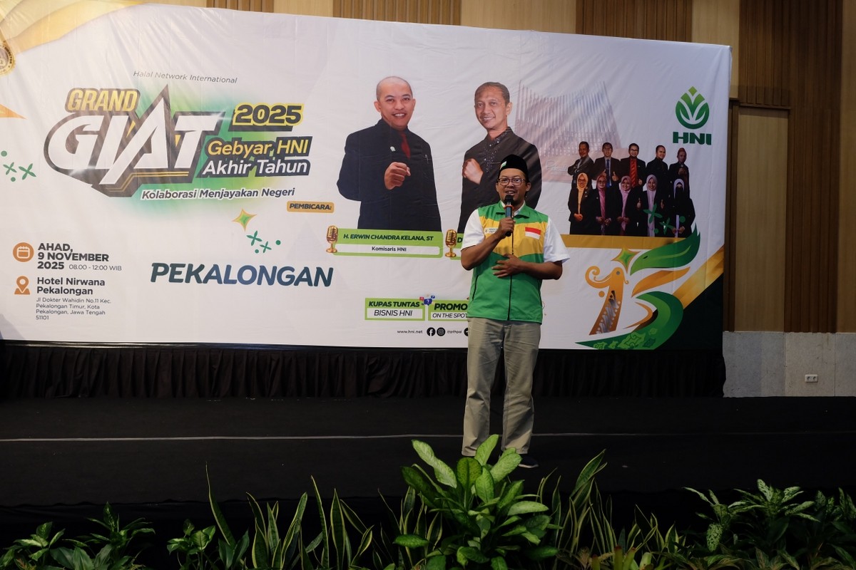Keseruan Grand Giat HNI 2025 di Pekalongan benar-benar luar biasa! 🤩 Bersama Komisaris HNI, H. Erwin Chandra Kelana, ST dan Start Leader Club HNI Dwi Medi Hartono LDED, suasana penuh inspirasi dan semangat bisnis halal terasa sangat membara di Pekalongan. 🔥 #GrandGiatHNI #GiatHNI2025